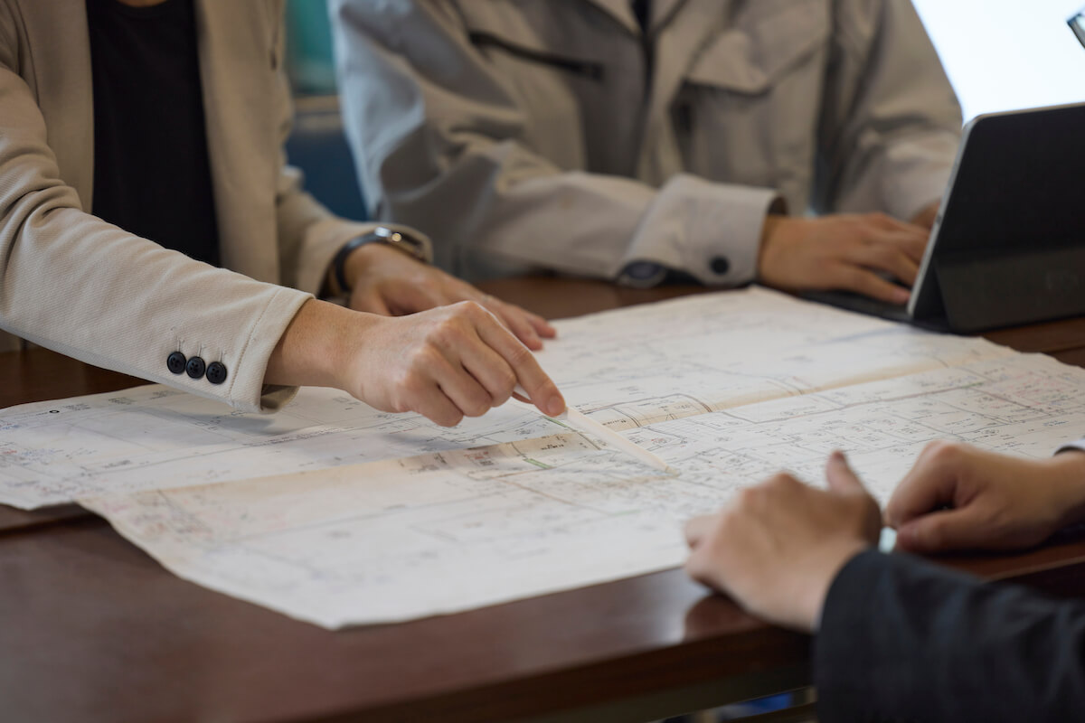 私たちの携わらせていただく建物は、現場がスタートする前の準備期間を含めると、約1年、時にはそれ以上にわたり、お施主様や設計の先生、さまざまな分野のプロフェッショナルである業者の方々と一緒に進めていきます。